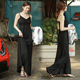 2017夏季新款欧美风吊带连衣裙莫代尔V领气质长裙高腰显瘦露背裙
