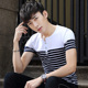 夏季男士纯棉短袖T恤男条纹圆领以純男装官方旗舰店HOME1HEILAN1