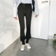 [言莎]韩国订单 韩版2017纯色修身高腰撕边毛边九分裤微喇裤女裤