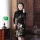 新款羊毛呢改良复古刺绣修身短旗袍连衣裙 兔毛领秋冬季旗袍 礼服