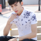 青年时尚潮寸衫修身款韩版印花衬衫夏季学生半袖衬衣流行男装短袖