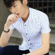 夏季男士流行装短袖衬衫青年时尚潮流寸衫修身韩版条纹薄半袖衬衣
