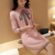 2016春秋新款娃娃领中长款毛衣连衣裙韩版蝴蝶结针织女打底衫
