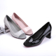 欧洲站2017新款纱网漆皮拼接真皮时尚百搭休闲瓢鞋纯色粗跟浅口鞋