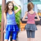 新款儿童游泳衣少女中大童泳衣平角裙式分体保守中长腿泳裤女学生