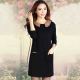 芷蕾加绒加厚长袖九分2016秋新款时尚韩版纯色圆领连衣裙女