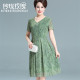 玲珑玫瑰中老年雪纺花鸟印花连衣裙夏装气质短袖大码妈妈装连衣裙