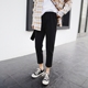 2017春新 韩国高品质修身显瘦垂感高腰一条边西装裤小脚裤九分裤