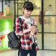 新款儿童棉连帽英伦格子衬衫女童拉链外套衫上衣中大童休闲衬衣