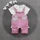 2017新款春夏童装儿童套装女宝宝短袖背带裤条纹纯棉T恤两件套潮