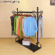 服装店展示架落地式双层服装架铁艺衣架简约现代复古侧挂挂衣架黑