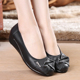 秋真皮单鞋女鞋工作鞋黑色软底坡跟蝴蝶结妈妈鞋牛皮浅口上班女鞋