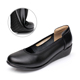 秋冬新款真皮圆头职业OL工作鞋女鞋黑色单鞋坡跟浅口妈妈鞋休闲鞋