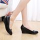 大码真皮女鞋单鞋工作鞋黑色舒适坡跟蝴蝶结圆头浅口休闲妈妈鞋秋