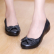 防滑牛筋底舒适休闲女鞋 蝴蝶结浅口真皮女单鞋 套脚白色护士鞋