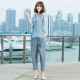 RANRAN2017夏季名媛名媛小香风亚麻九分裤套装女宽松气质两件套