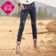 裂帛2017夏装新款枝叶刺绣长裤子修身水洗做旧牛仔裤女抓痕破洞