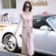 2017夏装新款女装时尚套装短袖T恤九分裤系带修身两件套套装裤女