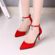 新款欧美时尚女鞋 3CM低跟红色尖头高跟鞋细跟浅口职业OL单鞋女潮