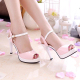 2017夏新款一字扣带防水台水钻鱼嘴高跟凉鞋女中跟细跟时尚女鞋潮