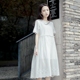遇见甜美森系白色棉质连衣裙女中长款宽松短袖绣花裙子春夏新款