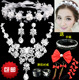 新娘饰品结婚纱首饰韩式水钻红色项链耳环套装婚庆礼服头饰配饰品