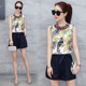 夏季套装女时尚两件套2017新款韩版女装无袖雪纺衫阔腿短裤a字裤