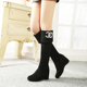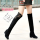 2017春秋季高跟棉靴瘦腿高筒女靴韩版绒面弹力长筒靴坡跟过膝长靴