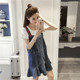 水洗牛仔背带裙+弹力棉T短袖打底衫两件套2017夏装新款韩版女学生