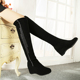 2017春秋单靴弹力三穿过膝长靴韩版坡跟高筒女靴内增高瘦腿长筒靴