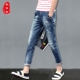 协协乐春季九分牛仔裤男青年小脚修身型韩版破洞哈伦裤9分裤子