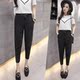 2017新款春夏女装韩版 时尚潮款纽扣显瘦九分裤女 哈伦裤 女裤子
