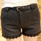 蕾丝拼接毛呢短裤2017春秋新款韩版女士短裤修身大码休闲热裤显瘦