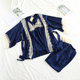 性感睡衣女夏三件套韩版V领真丝吊带+长裤+浴袍蕾丝家居服冰丝