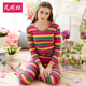 凡妮拉春夏保暖套装秋衣秋裤长袖深V领蕾丝性感打底内衣女士睡衣