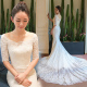 婚纱礼服一字肩新款2017长袖小拖尾新娘婚纱鱼尾收腰修身显瘦夏季