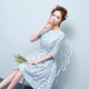伴娘礼服中长款2017新款香槟色伴娘服年会晚礼服中袖修身连衣裙女