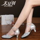 四季拉丁舞鞋女成人中跟高跟软底银色夏季跳恰恰交谊广场舞蹈鞋子