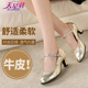 真皮拉丁摩登舞鞋女成人跳舞华尔兹国标中跟软底四季广场交谊舞蹈