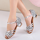 银色拉丁舞鞋女式成人舞蹈鞋中跟高跟交谊夏广场舞鞋软底跳舞鞋子