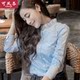 木耳领衬衫女长袖2017春装新款韩国时尚修身显瘦上衣甜美纯棉衬衣