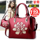 专柜品牌女包2017新款手提包女大包单肩包刺绣中年女士包包斜挎包