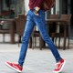 秋季新款猫须破洞牛仔长裤男 小脚青少年英伦弹力修身休闲长裤子