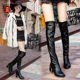欧洲站2016秋冬新款过膝长靴加绒显瘦绑带女靴子粗跟性感骑士靴潮