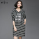 永恒之秀大码女装2017春季新款胖mm宽松中长款条纹显瘦连衣裙上衣