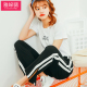 春季韩版高腰百搭直筒裤女裤脚开叉阔腿裤白边撞色运动休闲裤长裤