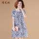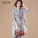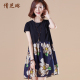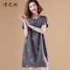 倩芝琳印花棉麻拼接中长款短袖连衣裙亚麻大码女装2017夏装新款