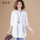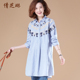倩芝琳原创大码圆领中长款刺绣花白色棉娃娃衫衬衫女装2017春装