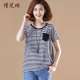 倩芝琳2016夏装新款原创大码文艺圆点印花条纹短袖棉T恤宽松女装