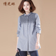 倩芝琳2017春装休闲宽松衬衣中长款长袖棉刺绣竖条纹衬衫大码女装